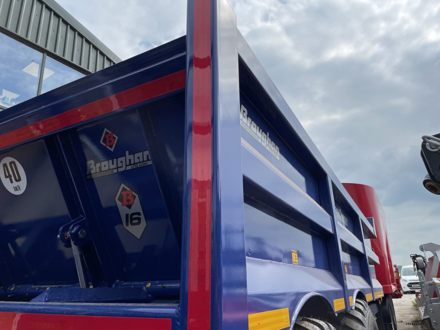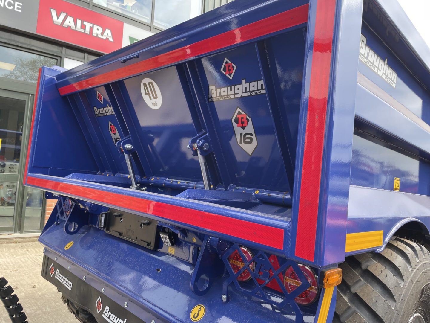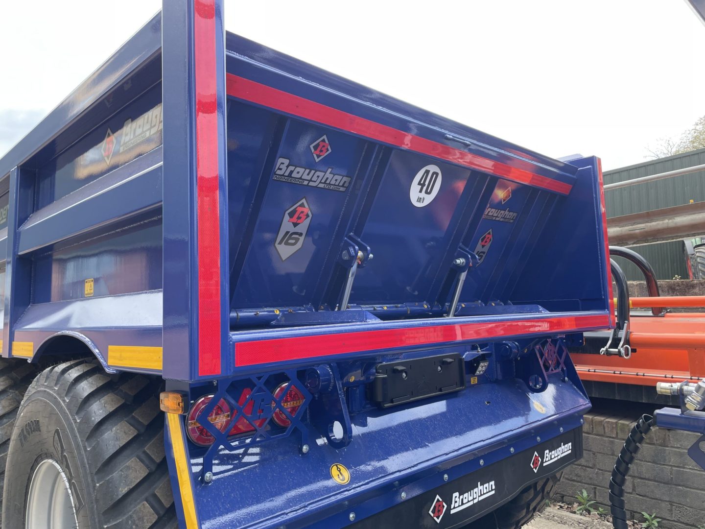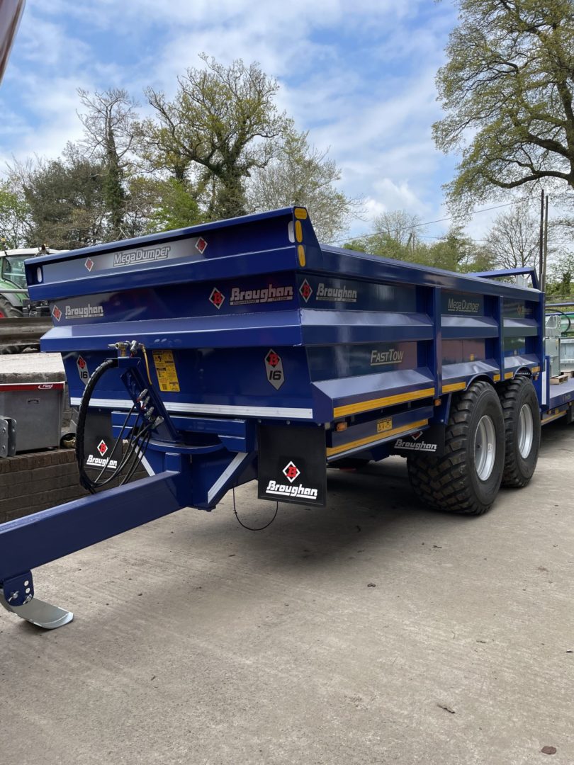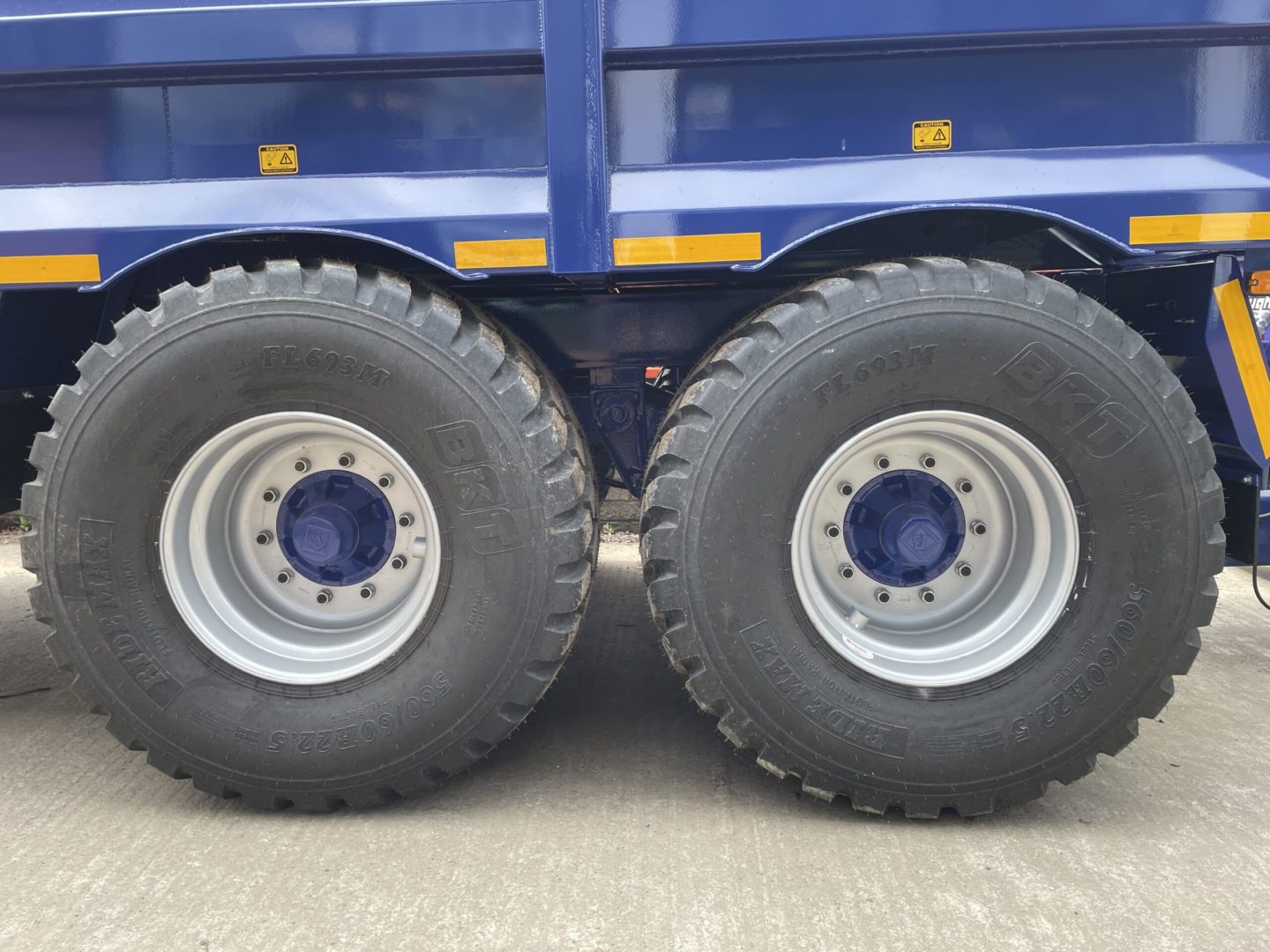 16T DUMP TRAILER WITH DROP DOWN DOOR, AIR & HYD BRAKES WITH LOAD SENSING, WELD ON SWIVEL HITCH, REAR BEACON, CHANNEL ON DOOR FOR RAMPS, 560x60x22.5 MASARATI BLUE